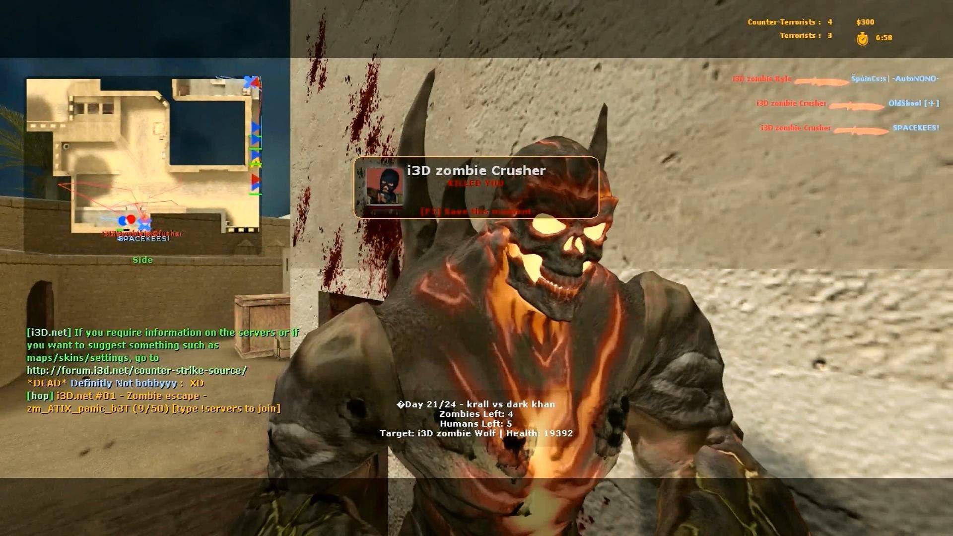 Acest cs cu zombie este naspa,nu trebuie sa depui efort sa omori zombie,este chiar foarte usor,armele din zpmenu costa doar 1,zombie au putin hp si trebuie sa ai destul fps ca sa il joci.