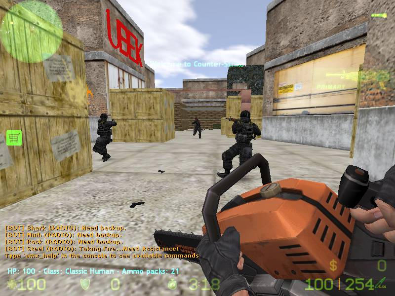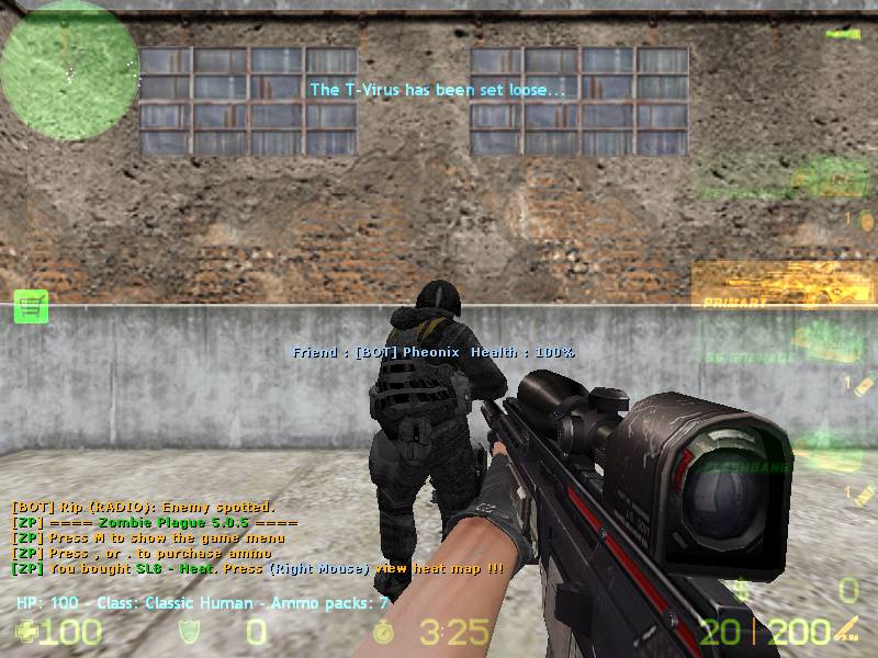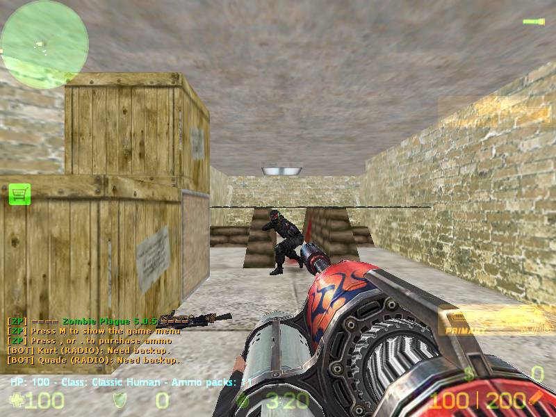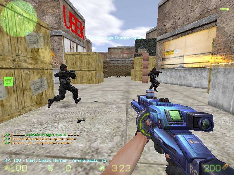 Un nou counter strike, un cs cu zombie care se poate juca cu boti. Va puteti alege orice harta doriti si apoi va puteti lua orice arma doriti din joc. Orice super arma costa doar 1 ammo. In folderul cstrike/addons/amxmodx/configs/zp_extraitems va puteti seta cat ammo sa coste fiecare arma sau iteme.